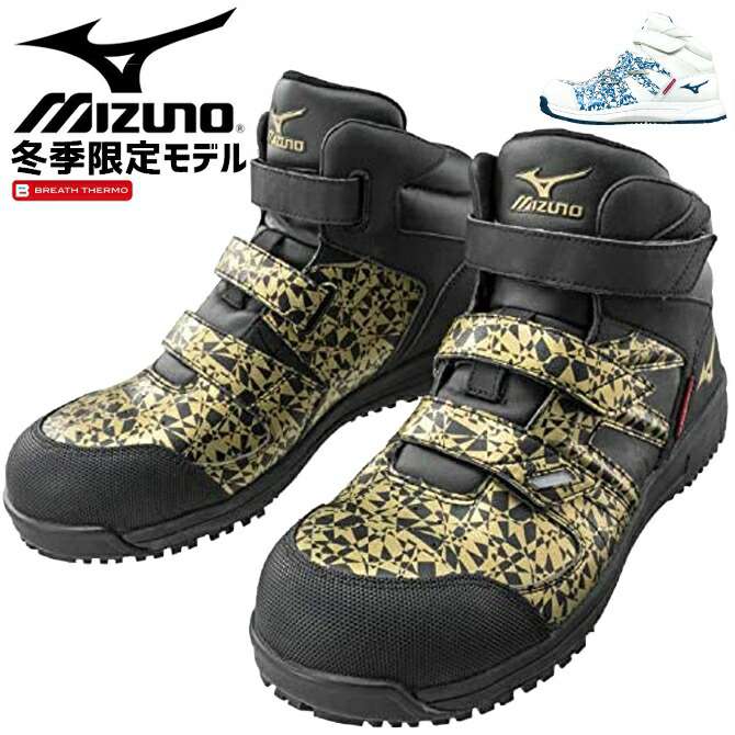 ミズノ 安全靴 限定 防寒 ハイカット マジックテープ スニーカー メンズ おしゃれ 作業靴 ブレスサーモ 白 黒 全2色 25cm-28cm F1GA1906