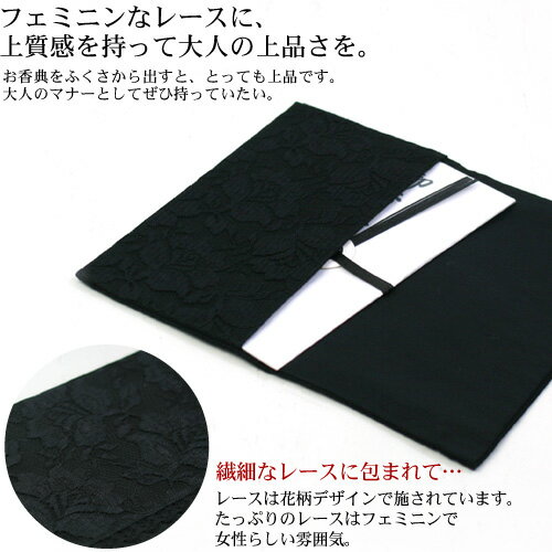 華やかで繊細な雰囲気のするブラックレースの袱紗は女性らしく大人っぽい雰囲気がしますよ。